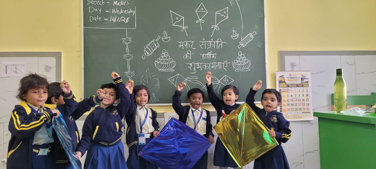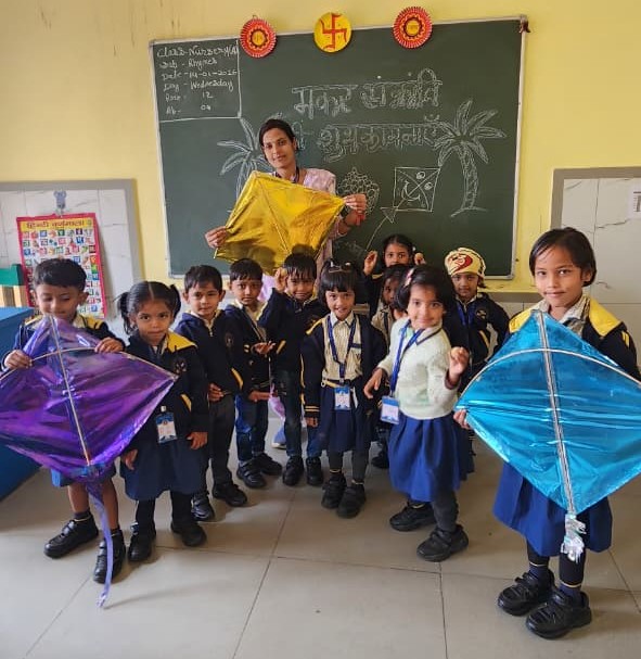 Teachers also guided the children on the importance of playing safe during Makar Sankranti, educating them about avoiding sharp strings, flying kites in open spaces, and being mindful of birds and others around them. Through these simple yet valuable lessons, children learned to celebrate festivals responsibly.