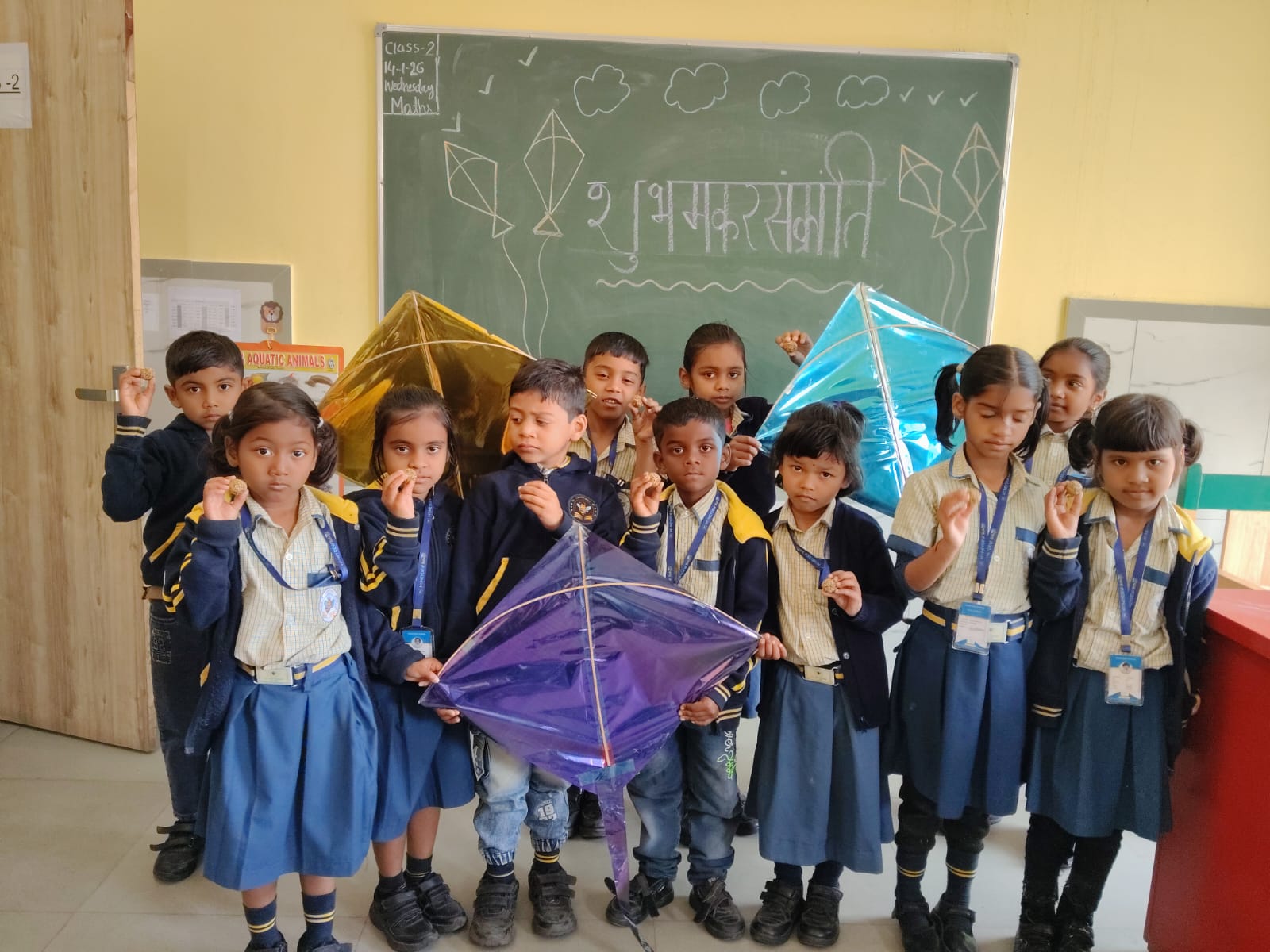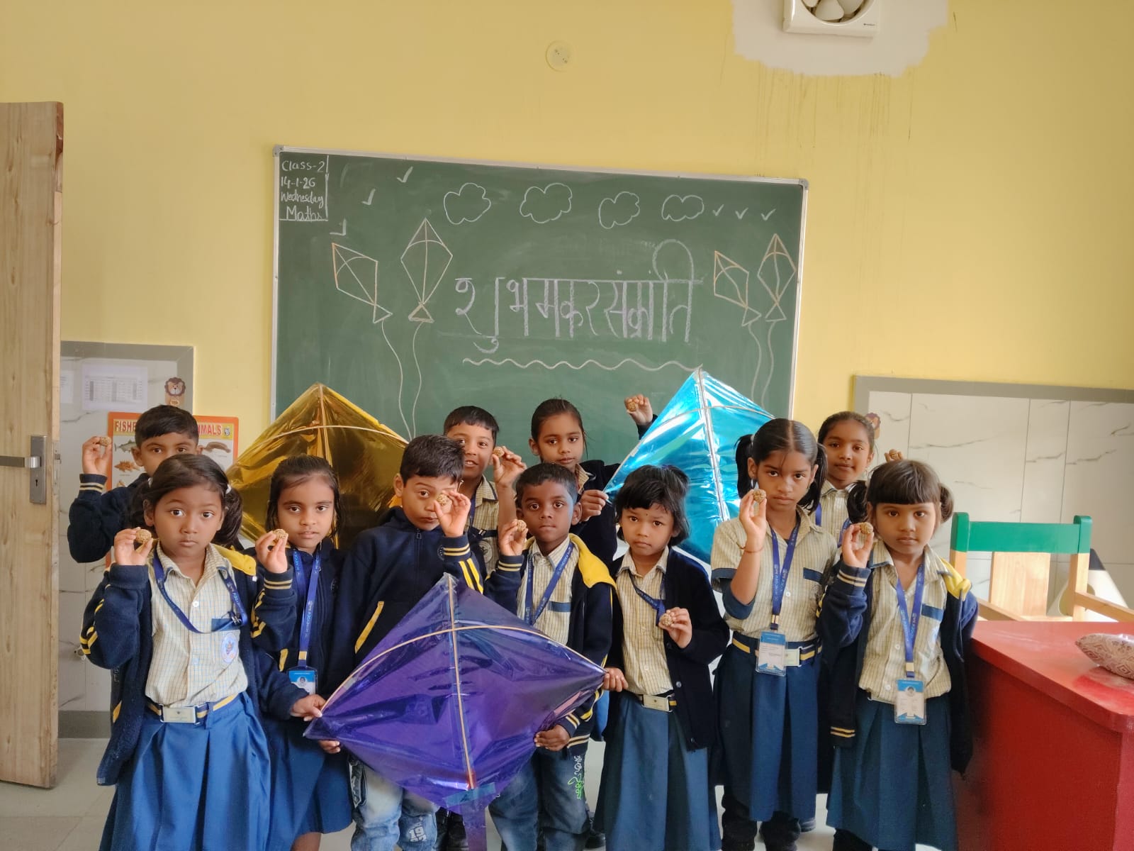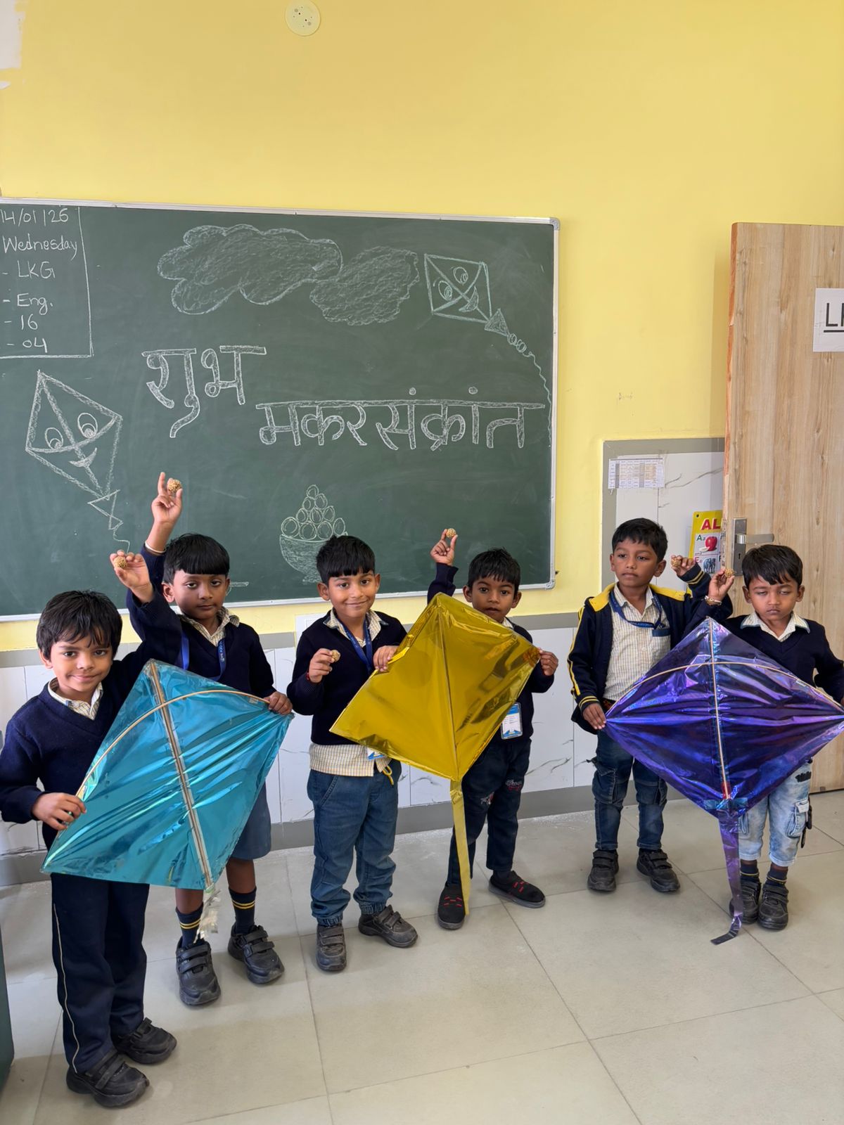 Children happily enjoyed tilli laddu, understanding their traditional significance during Makar Sankranti. The campus was filled with smiles as students posed for pictures with colorful kites, making the celebration lively and memorable.