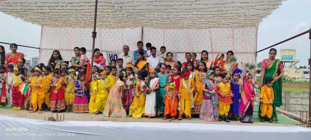 The highlight of the event was a Fancy Dress Competition, where students participated with great energy and creativity. Each child portrayed various mythological characters from Krishna's life, and their costumes, dialogues, and performances brought the legends of Janmashtami to life. The stage was filled with mini Krishnas and Radhas performing playful skits, dancing to devotional songs, and winning the hearts of the audience.