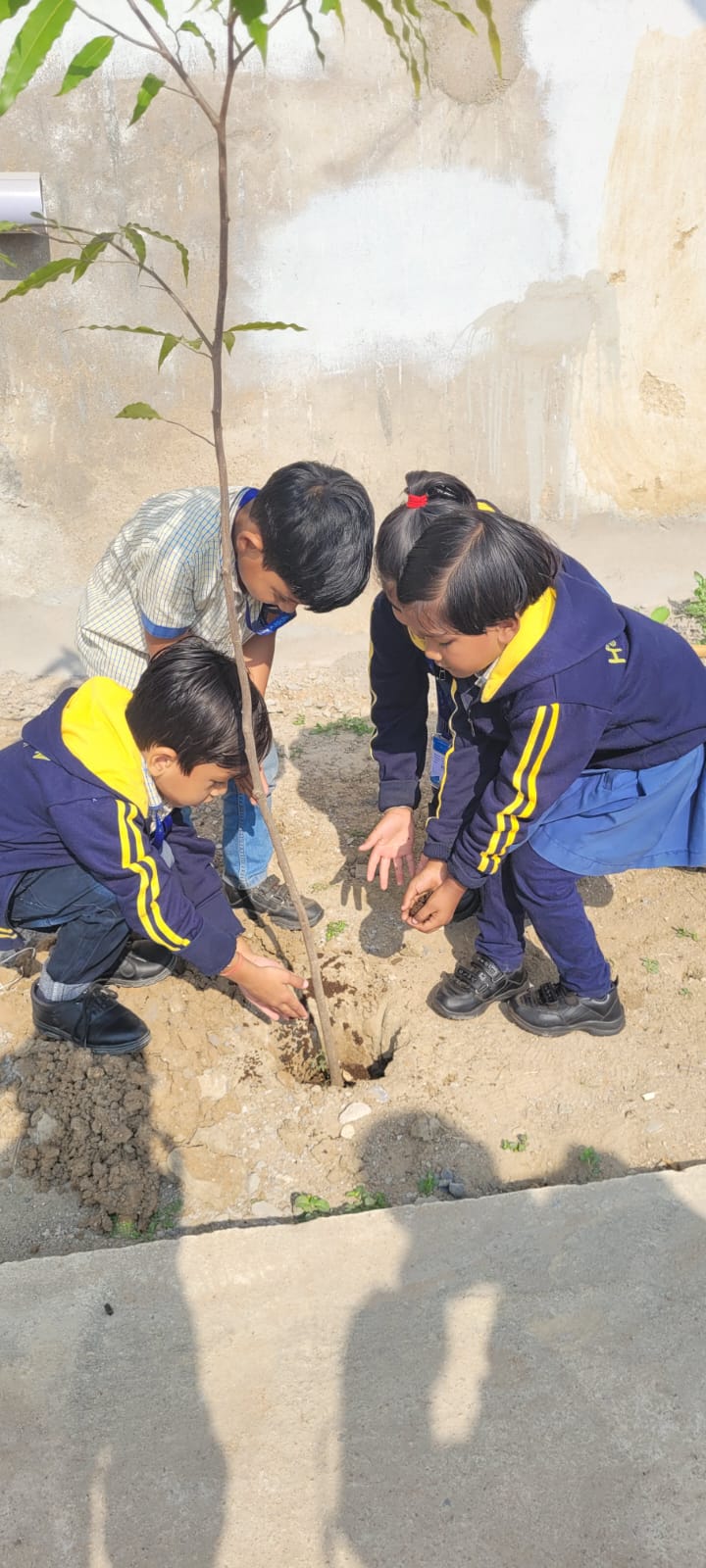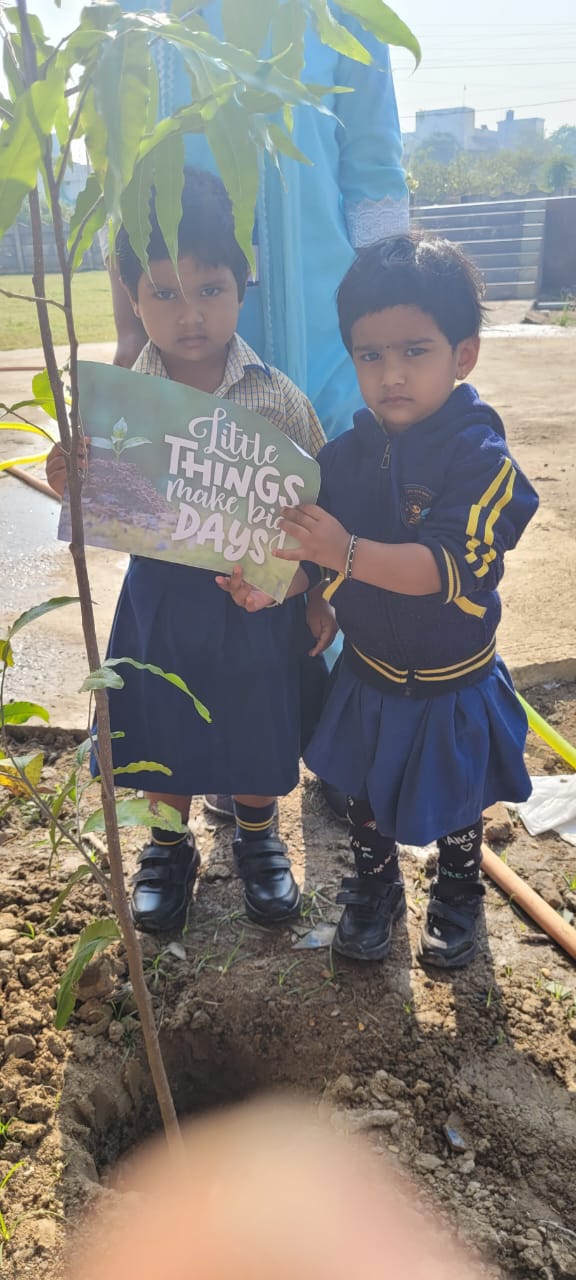 Our little learners enthusiastically participated by planting saplings, adding soil, and learning the importance of caring for plants. With the guidance of their teachers, the children experienced hands-on learning about how trees support life, provide clean air, and make our surroundings beautiful.
