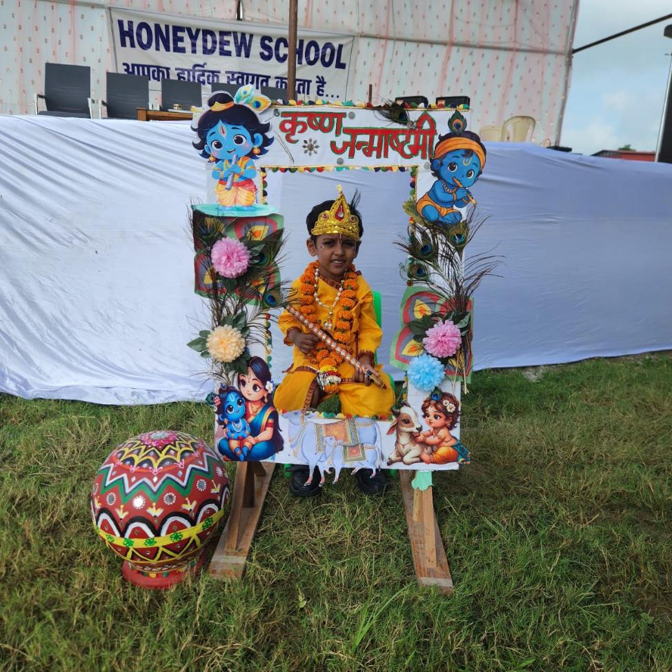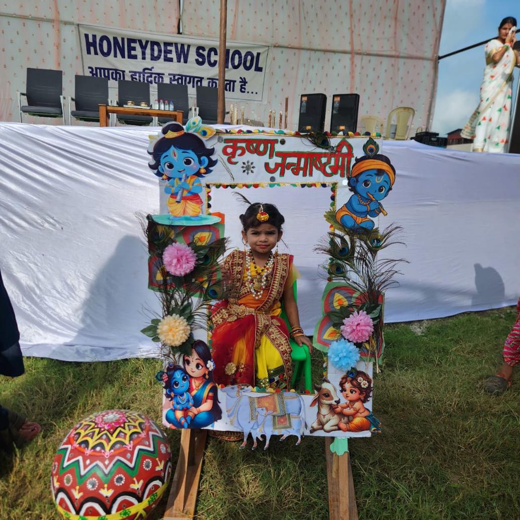 Honeydew School joyfully celebrated Janmashtami, the birth of Lord Krishna, with great devotion, color, and enthusiasm. The entire campus came alive with festive decorations, vibrant colors, and melodious bhajans as students and staff gathered to mark the auspicious occasion.